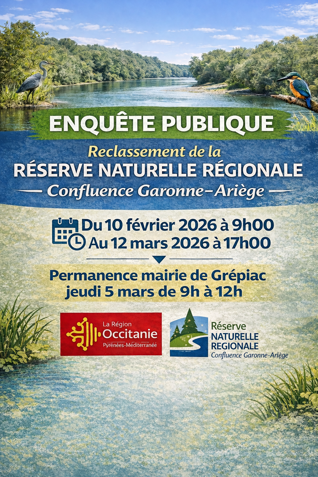 AVIS D’ENQUETE PUBLIQUE reclassement de la réserve naturelle régionale Confluence-Garonne Ariège