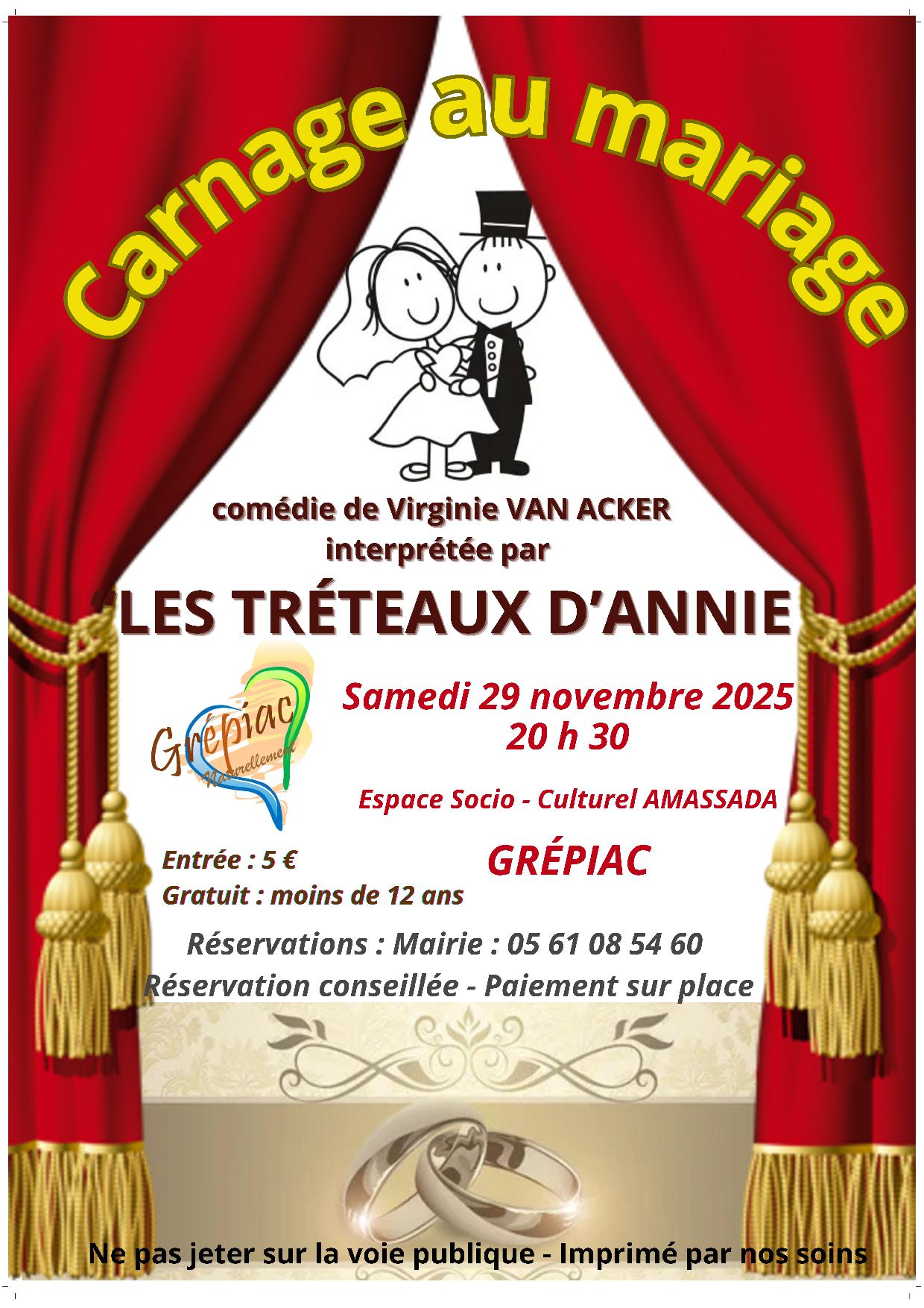 Comédie « Carnage au mariage » par « Les tréteaux d’Annie » 29/11 20h30
