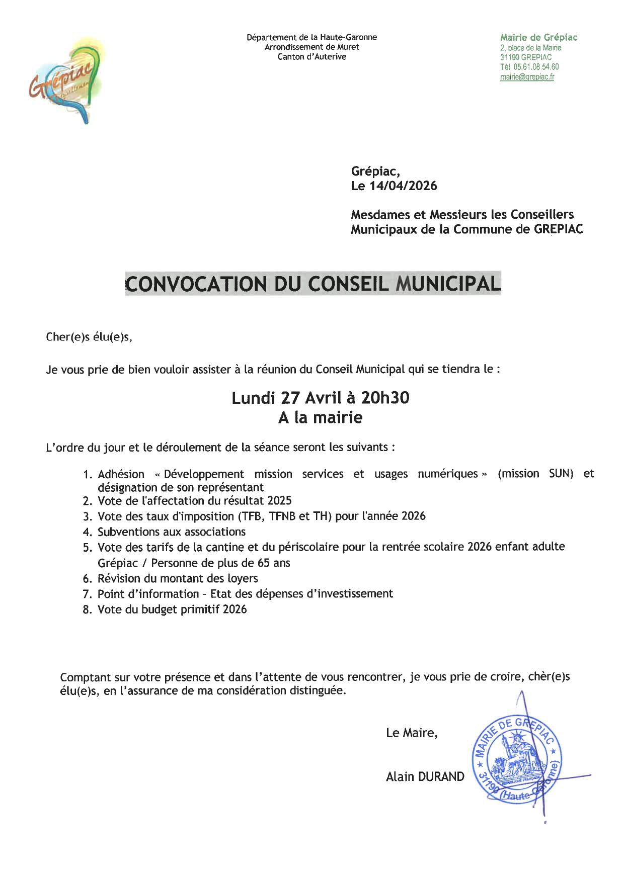 CONSEIL MUNICIPAL 27.04.2026