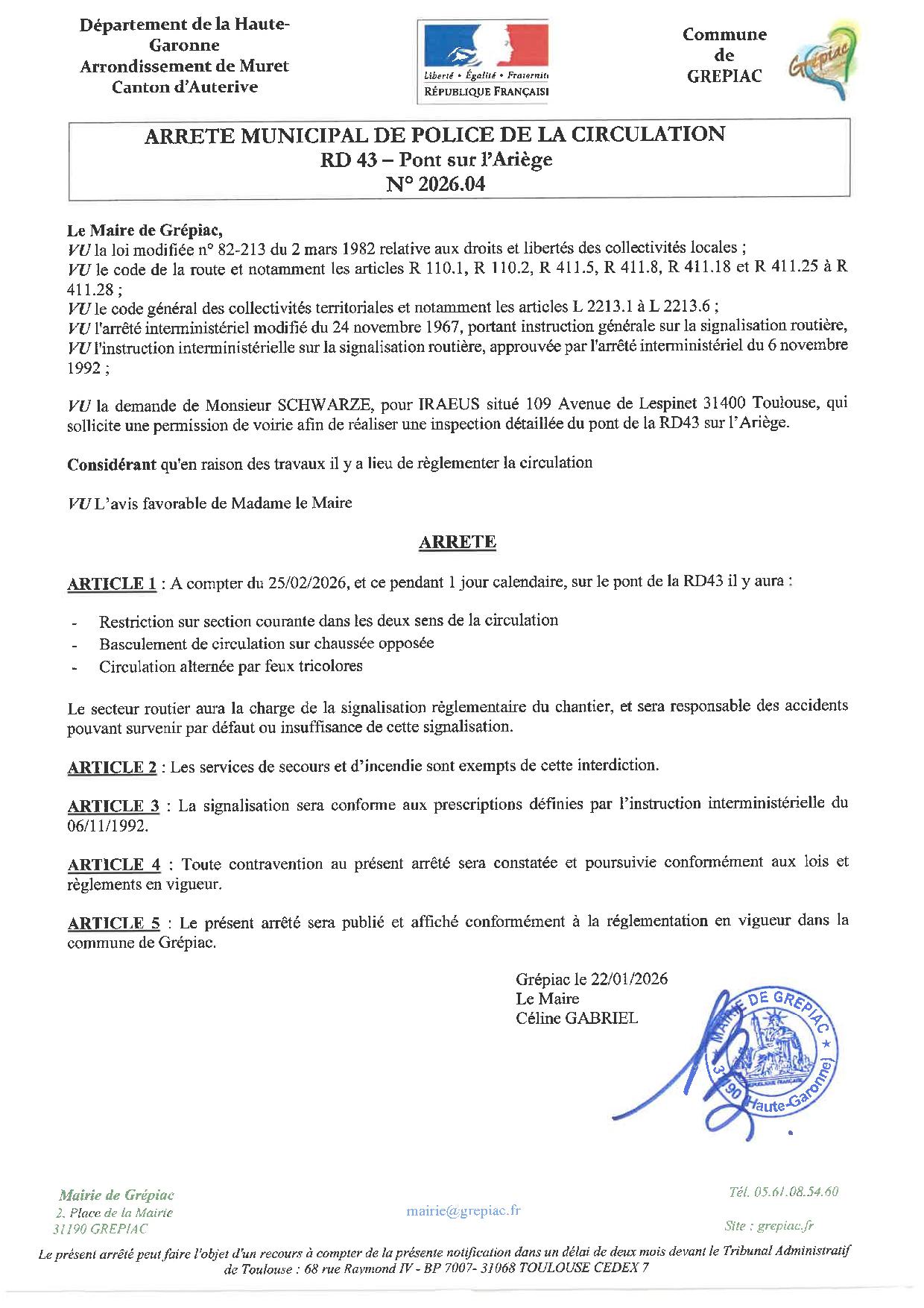 Le mercredi 25 février, le secteur routier organise une inspection détaillée du pont de l’Ariège avec restriction sur chaussée, basculement de la circulation sur la chaussée opposée et circulation alternée avec feu.